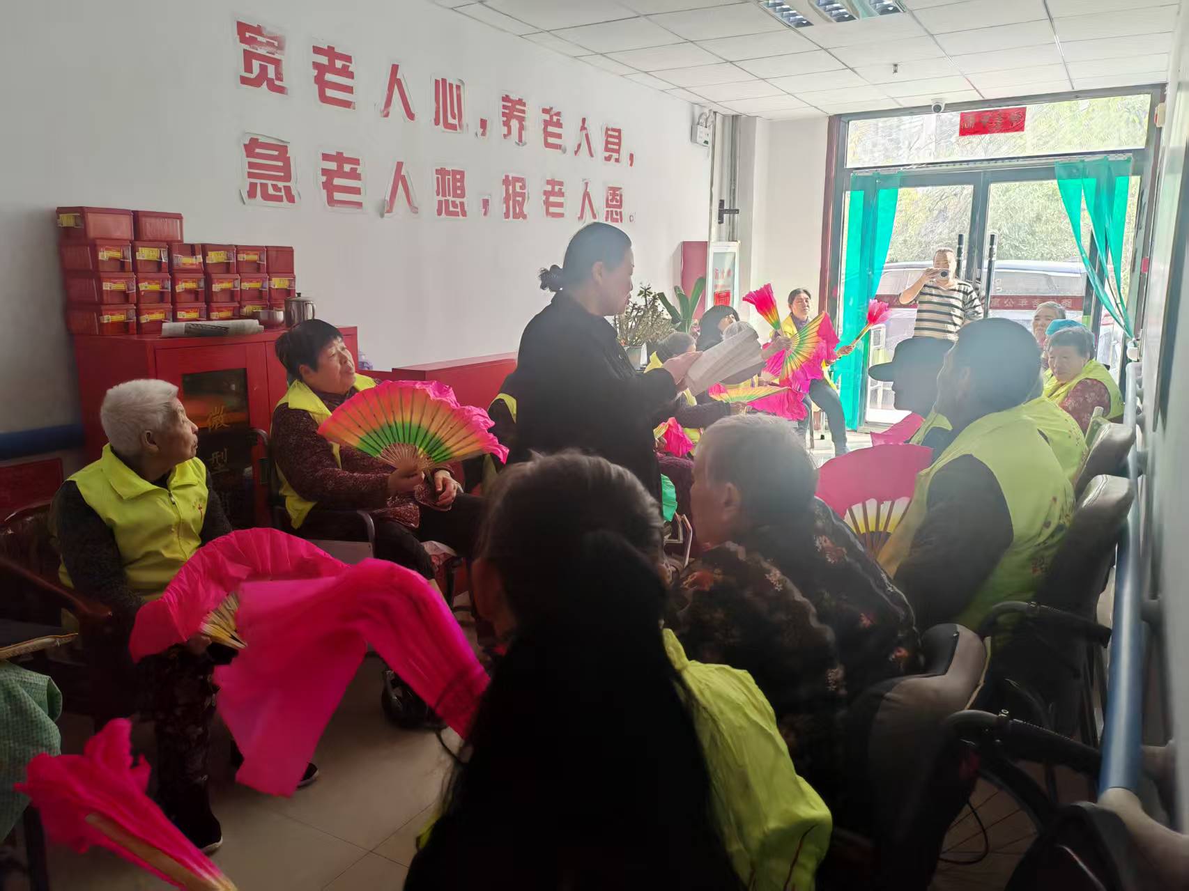 慰问组一行与老人们亲切交谈,仔细询问他们的身体和生活状况,并送上精心准备的慰问品。现场欢声笑语,其乐融融,老人们为我们一行人高唱《我爱你中国》,洋溢着一片尊老敬老的温馨气氛。